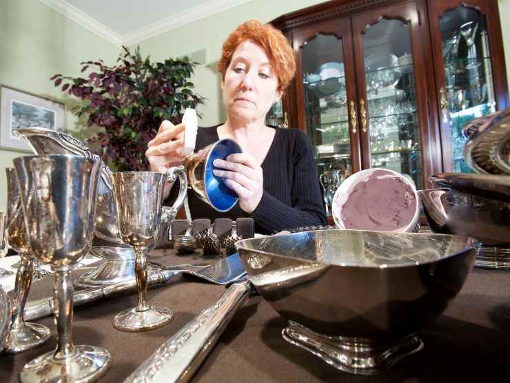 Intingiamo nello yogurt un panno in microfibra e strofiniamolo delicatamente su ogni oggetto, lasciamo riposare ciascuno circa 10 minuti, sciacquiamo e asciughiamo. Il risultato sarà di una brillantezza unica!