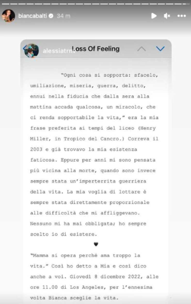 In bocca al lupo a Bianca Balti per il suo intervento e per il suo avvenire.