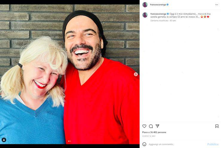 Quando, nel 1968, papà Salvatorico e mamma Jolanda diventano genitori, non mettono al mondo solo Francesco, ma anche sua sorella Paola. I due infatti sono gemelli. Sul profilo Instagram di Renga c’è uno scatto dell’anno scorso che li ritrae insieme in occasione del 53esimo compleanno di entrambi. Oltre a questa immagine, il post contiene anche una tenerissima foto di quando erano piccoli.
