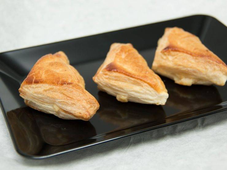 - Adesso non dovrete fare altro che riporli nella vostra friggitrice ad aria e cuocere a 200 gradi per soli 8 minuti. In alternativa (se non disponete di una friggitrice ad aria) poneteli su una teglia ricoperta da carta forno e dopo aver spennellato la superficie con un tuorlo sbattuto infornate in forno statico preriscaldato a 200 gradi per circa 15 minuti.