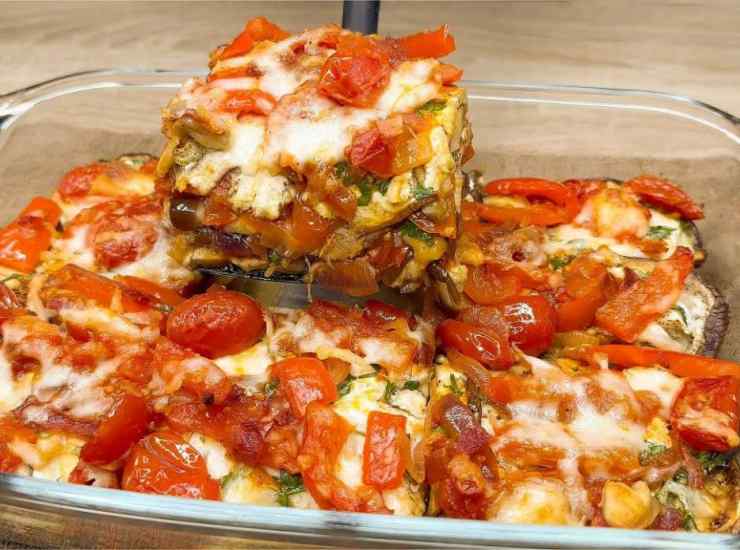 Stiamo parlando, per l’esattezza, di uno sformato di melanzane, con pomodorini e peperoni. Il loro sapore è esaltato e reso ancora più gustoso in questa ricetta. Vediamo insieme cosa ci occorre e il procedimento.