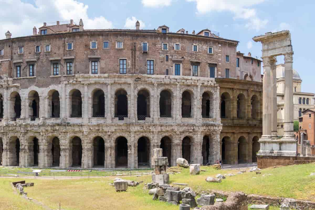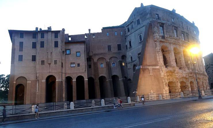 Si tratta del Teatro di Marcello, un teatro che risale alla Roma antica, fatto costruire dall’imperatore Augusto e ancora parzialmente conservato, in buono stato, ma con una particolarità che lo rende davvero unico. All’interno del semicerchio di due ordini di archi, infatti, non troviamo le classiche gradinate dei teatri antichi ma un palazzo intero.