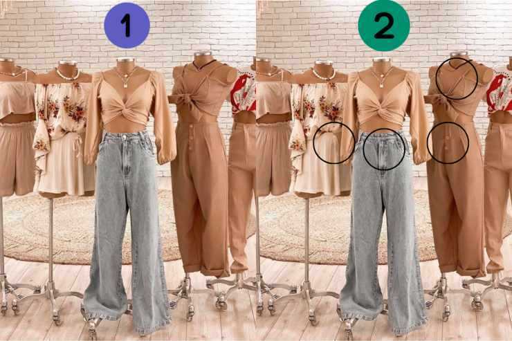 - Nel jeans indossato dal manichino al centro dell’immagine, nella prima c’è un bottone che manca nella seconda;