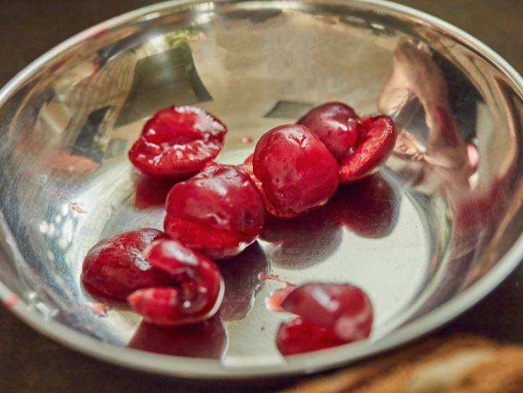 - Con l’ausilio della parte appuntita dello stuzzicadenti, fai una leggera pressione al centro della ciliegia in modo che il nocciolo possa scivolare direttamente sul fondo.