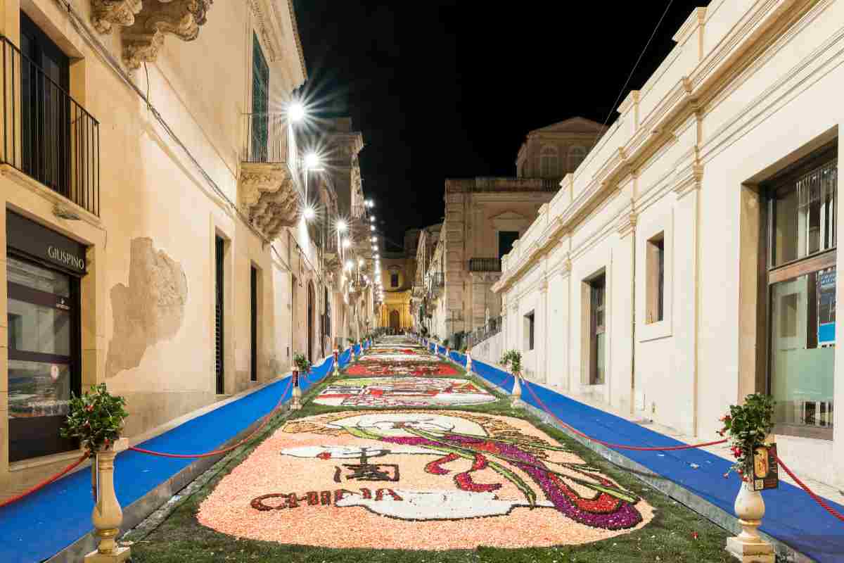 - L’infiorata di Noto, la meravigliosa località siciliana, richiama le tradizioni barocche della terra. Durante la manifestazione, le vie del centro storico vengono invase da fiori e petali.