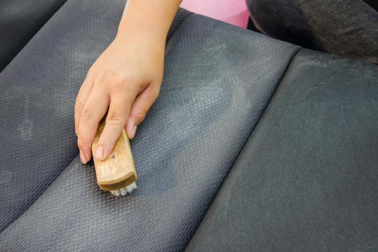 Una volta trascorso questo tempo possiamo togliere il tutto con un piccolo aspirapolvere. Spazzoliamo poi con una spazzola a setole dure. In questo modo siamo sicuri che venga perfetto. Passiamo anche una salvietta deumidificata. C’è rimasto ancora qualche alone?