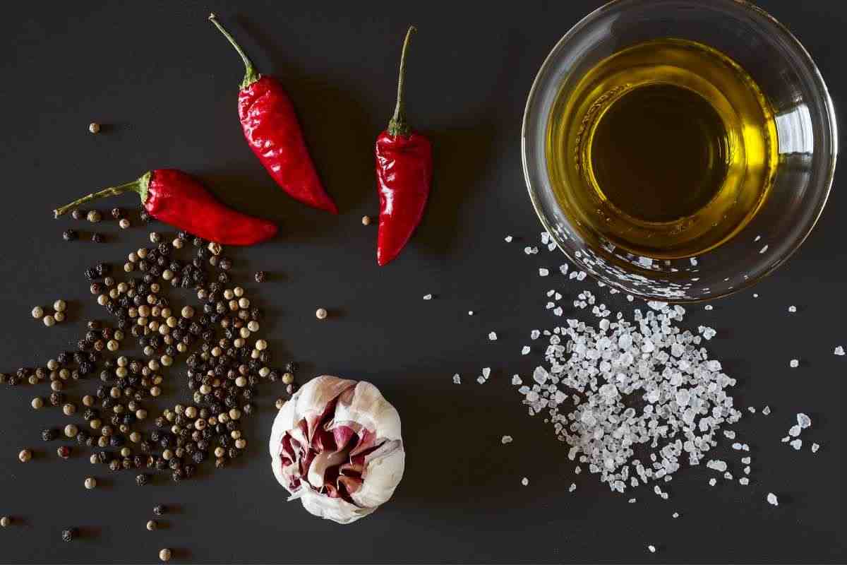 Peperoncini freschi (la quantità dipende dalla tua tolleranza al piccante), Olio d’oliva extra vergine di alta qualità, 60g Sale non trattato, 6 Chicchi d’ aglio, 60g di aceto di mele bianco.