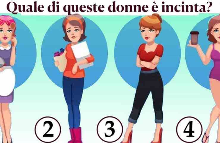 Osservate con attenzione l’immagine in alto. Vi sono disegnate quattro donne differenti, intente a fare qualcosa di diverso l’una dall’altra. L’unica informazione che abbiamo è che solo una di esse è incinta. Il test visivo vi offre la possibilità di mettere alla prova la vostra abilità deduttiva, allenando la mente e invitandola a sfruttare il potenziale della vostra intelligenza.