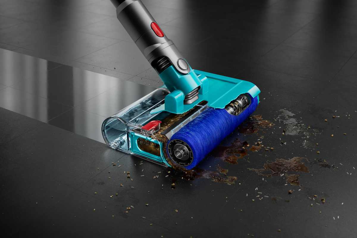 Per utilizzare l’elettrodomestico, la prima cosa da fare è riempire il serbatoio dell’acqua, che ha una capacità di 300 ml, sia con semplice acqua che con una miscela di acqua e un po’ del detersivo che usate normalmente per i pavimenti. Poi, bisogna rimettere tutto insieme e premere il grilletto Dyson. A questo punto, il rullo inizia a girare e viene inumidito da otto getti d’acqua. Una piastra poi “raschia” l’acqua sporca dalla spazzola e la convoglia in una vaschetta di raccolta.