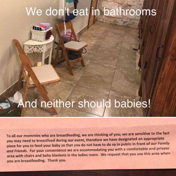 Una sposa ha scritto sul proprio invito di nozze di non allattare in pubblico, ma di andare nei bagni delle signore a farlo.