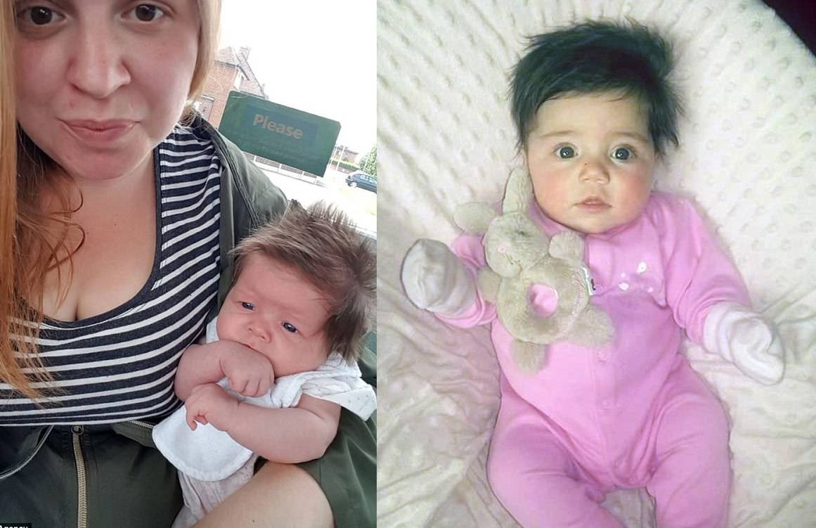 Una bimba di 4 settimane con “incredibili capelli” viene invidiata da tutti