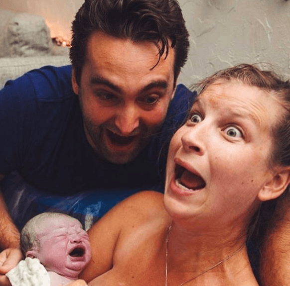 Una coppia di genitori è stata immortalata nel momento immediatamente successivo il parto e la foto è diventata virale