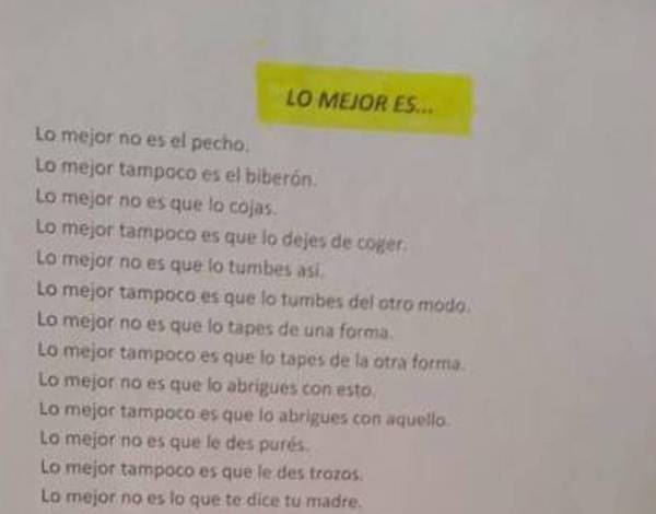 “Il meglio non è il seno e neanche il biberon”: il cartello di un pediatra
