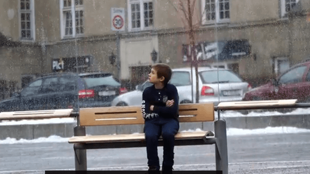 Guardiamo il video che ha smosso la sensibilità degli adulti nel vedere un bimbo solo e intirizzito alla fermata dell'autobus.