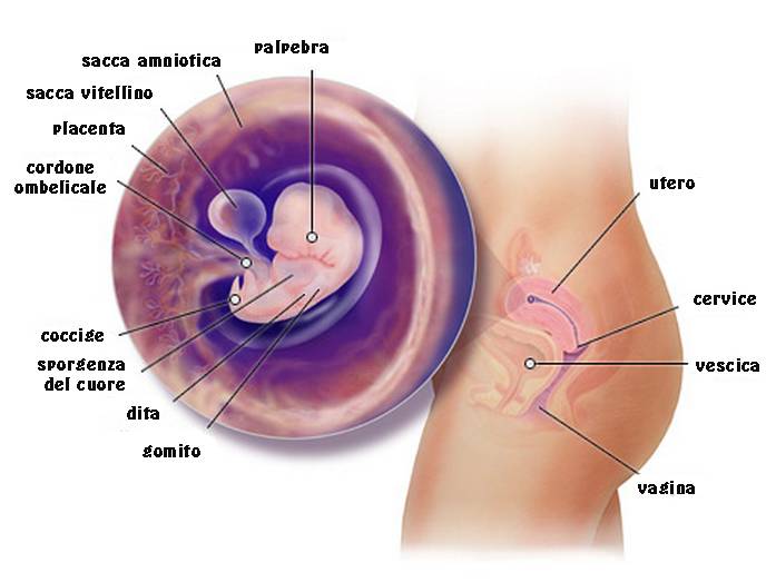 L’embrione misura, in media, circa 8 millimetri, pesa pochi grammi e ha le dimensioni di un pisello.Tuo figlio, anche se tu non lo percepisci, è in continuo movimento all’interno del sacco amniotico. Sguazza nel liquido amniotico e nuota indisturbato.