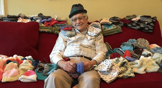 Un nonno di 86 anni ha deciso di imparare da autodidatta a realizzare cappellini per i neonati prematuri. Una storia che scalda il cuore.
