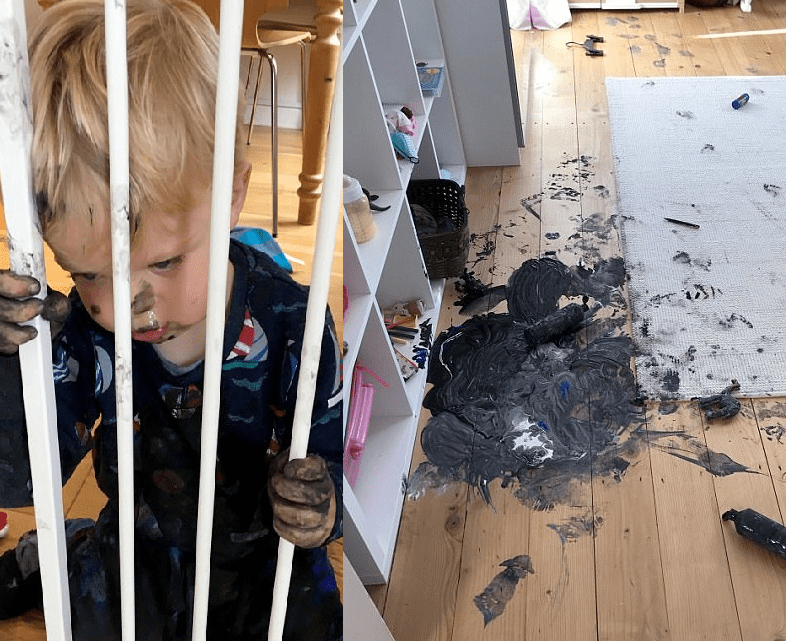 Un bambino di 2 anni ha combinato un disastro in casa senza saperlo.