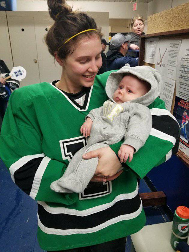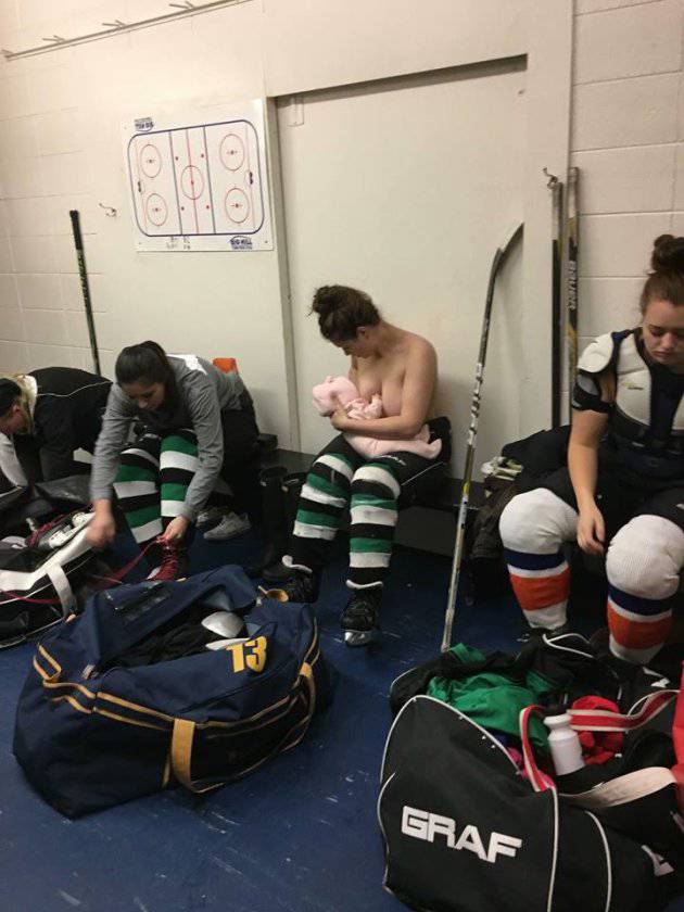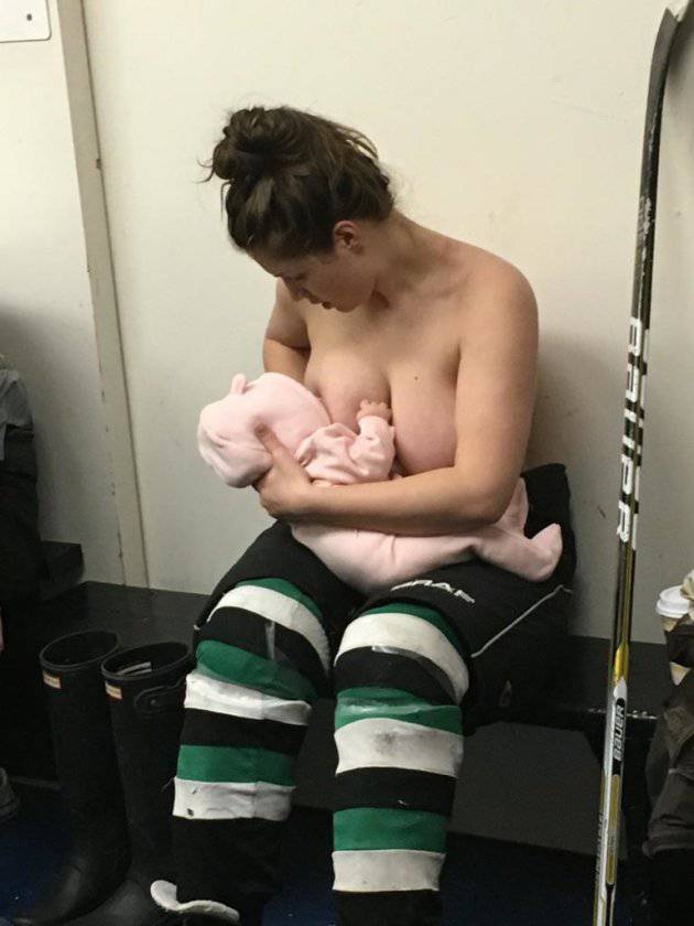 Una mamma giocatrice di hockey ha postato un’immagine mentre allatta la figlia durante l’intervallo di una partita.